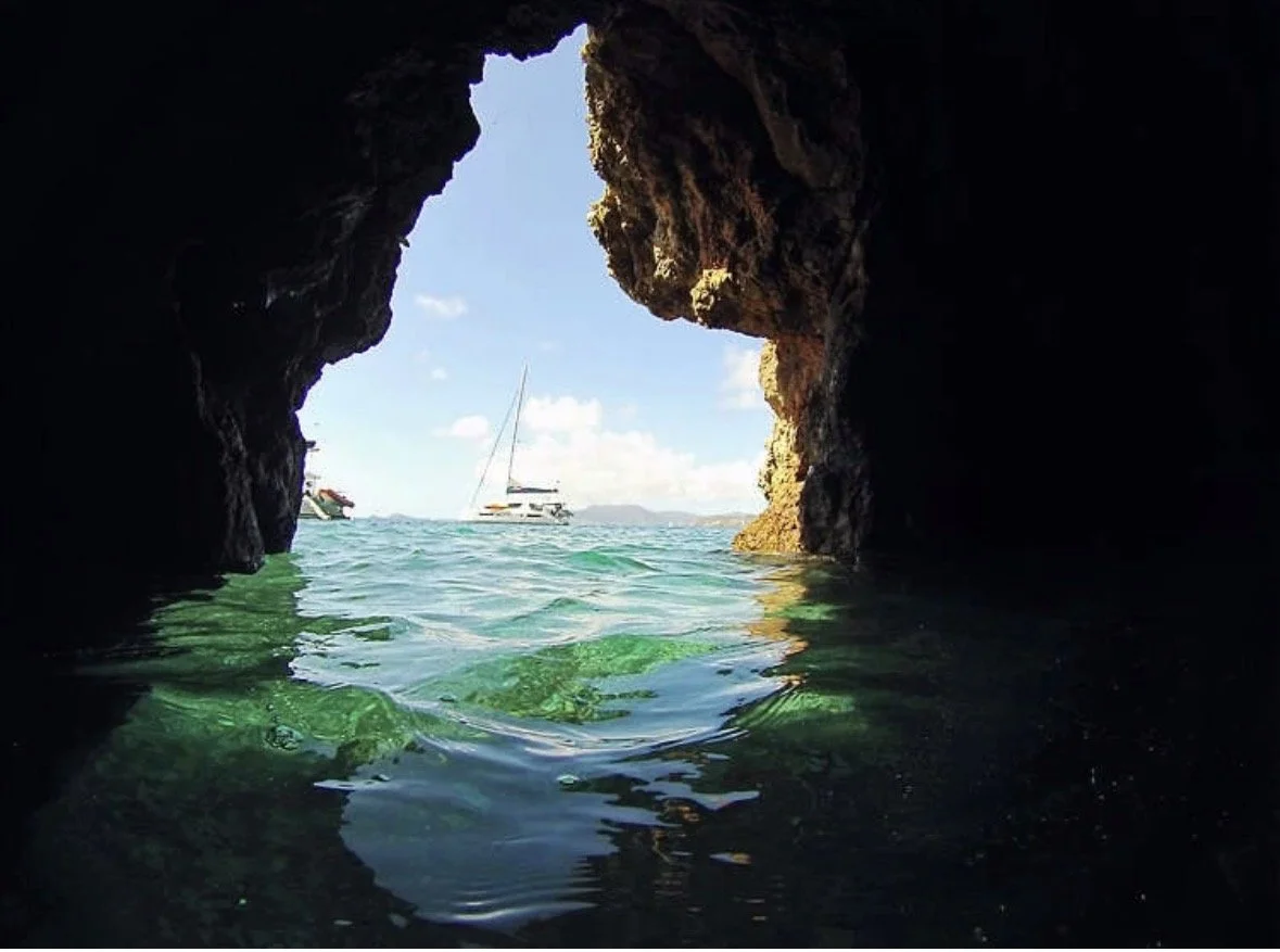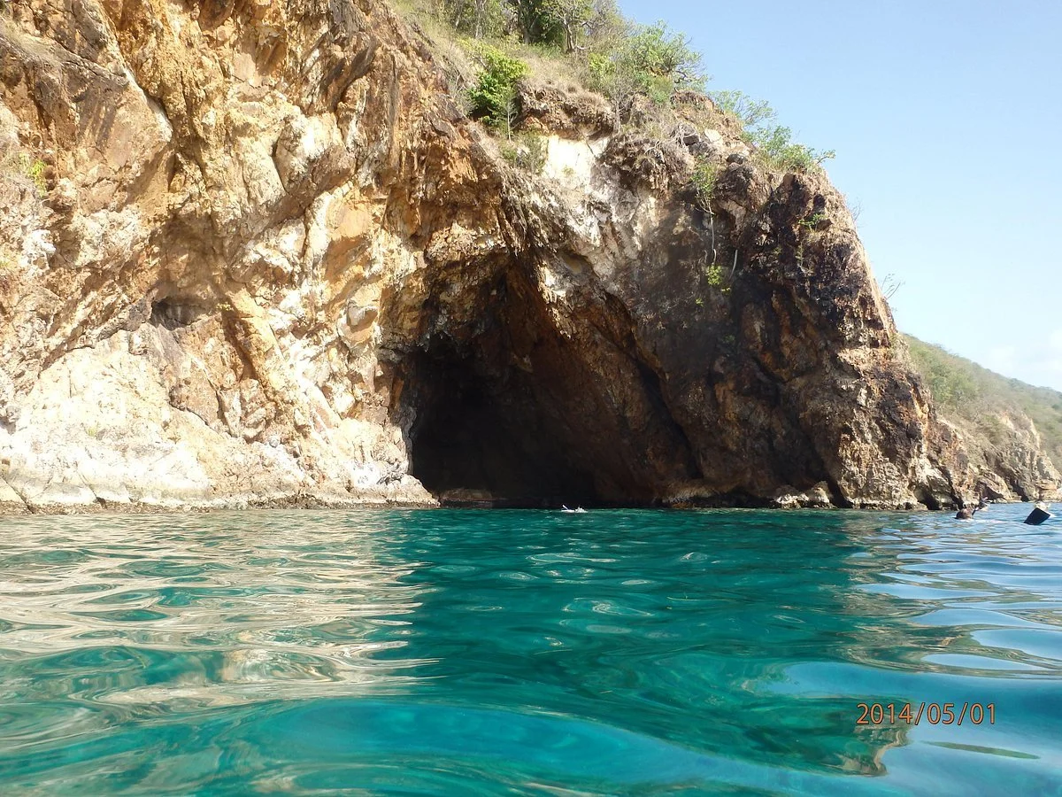 We departed for Treasure Point and the caves. We picked up a mooring ball and took the dingy near to the shore and tied up to the dingy mooring line. Legend has it that pirates hid their treasure in these caves.
