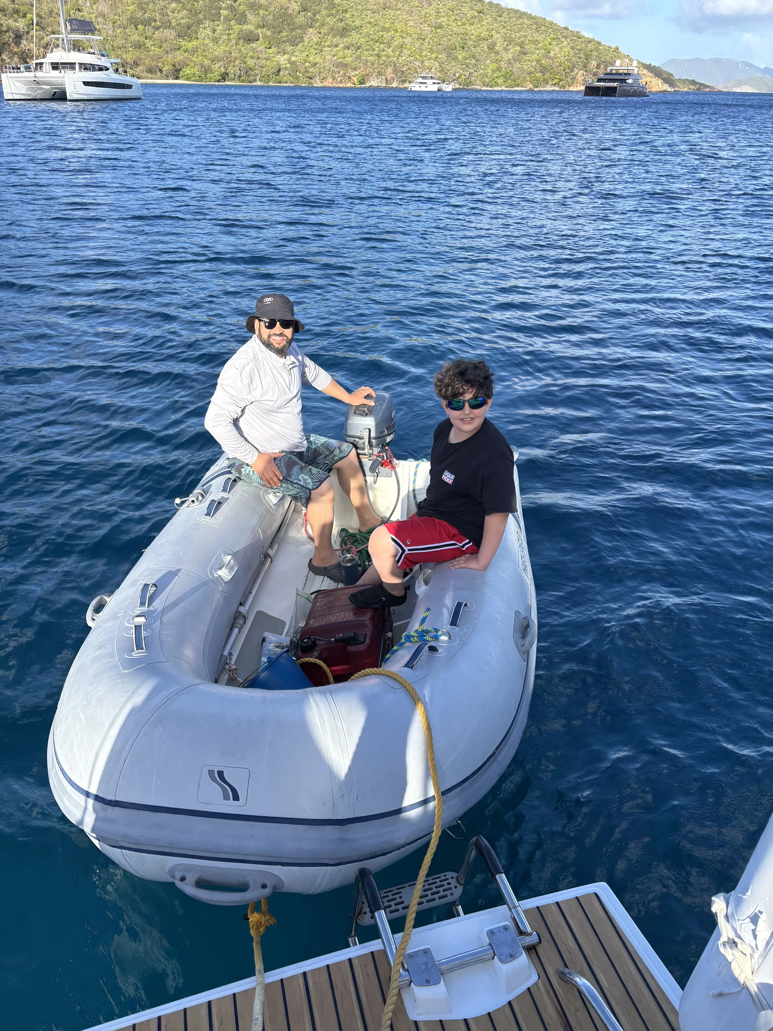 In the morning Oscar and Jack went fishing in the dingy. They always take a handheld VHF radio just in case. There are oars in the dingy also for just in case. The dingy motor overheated. After the engine cooled down they got it started and returned to the boat. This was our first situation. I called Navigare on the dedicated phone they provided. The technician said they would send a boat with a replacement engine. I called back after an hour and they said the boat was departing soon. An hour after that I called again. They said the boat was nearby but had to attend another situation on another boat first. Three hours later we had a replacement engine. Situation solved.