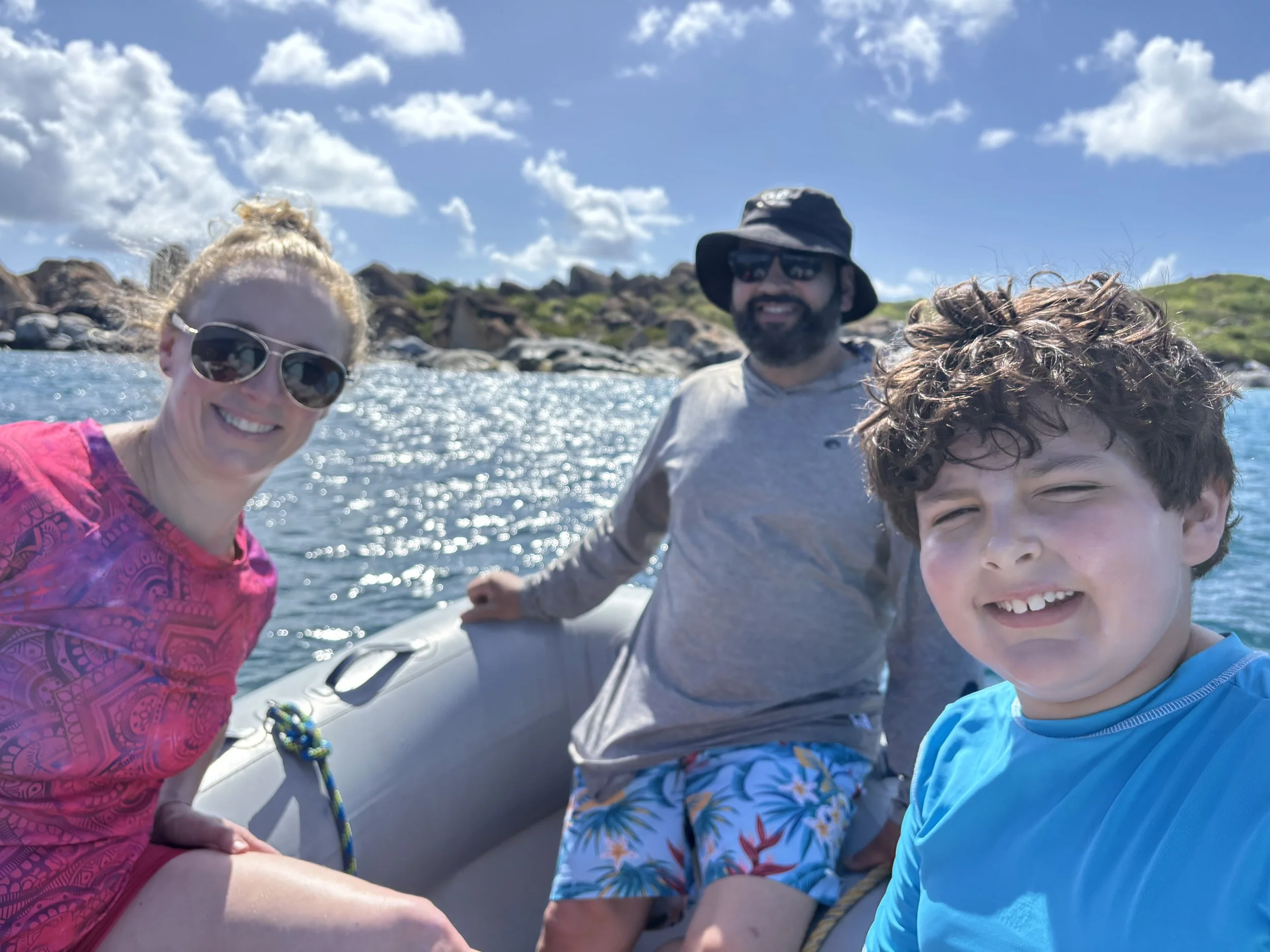 The water is warm and crystal clear. I rented a dingy ladder which makes it way easier to climb into the dingy.