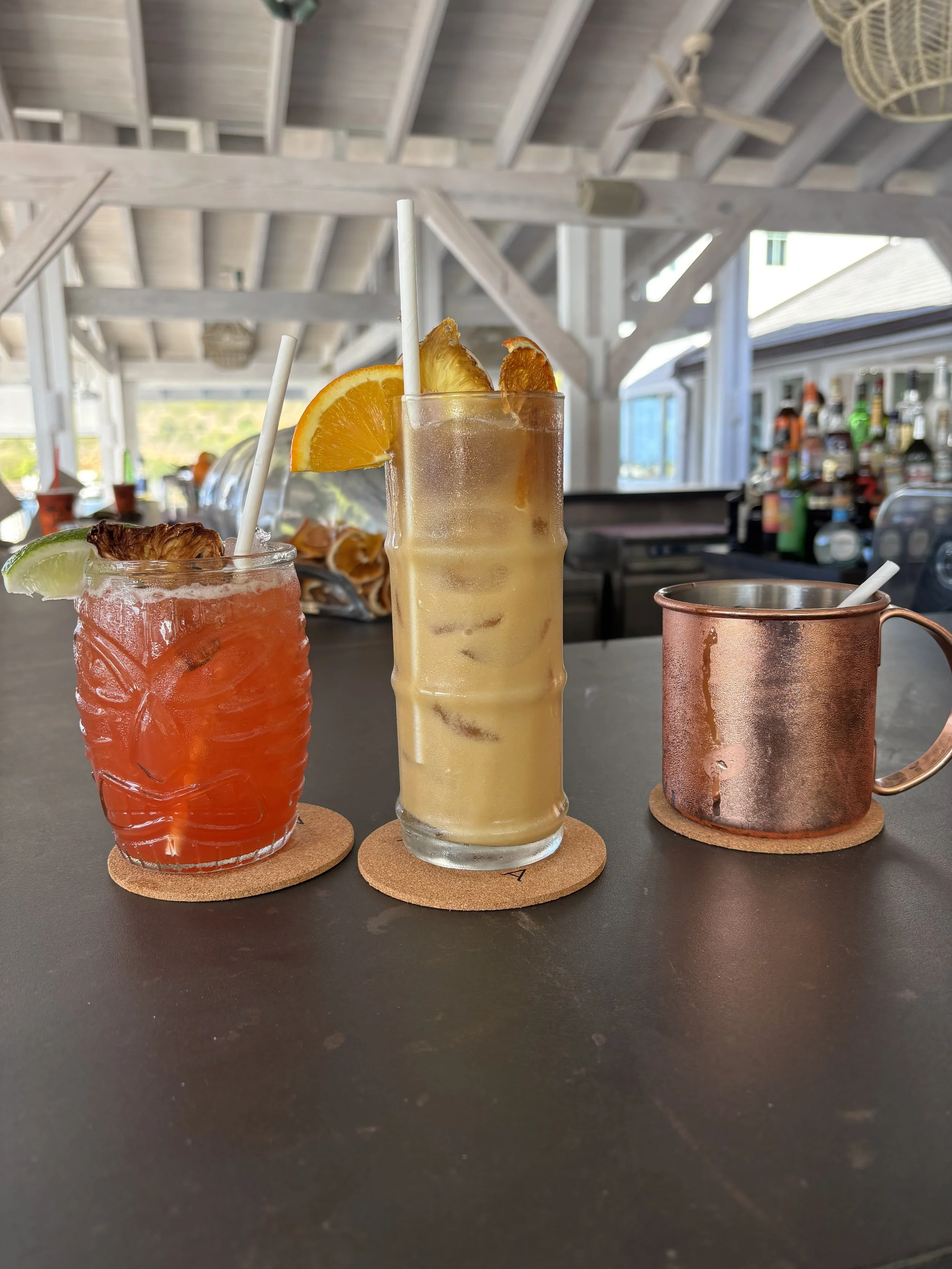 We found out our Boatyball and tied up, First stop was the alleged grocery store. Not much of a selection. The second stop was much better. The bar had great drinks. Oscar had a Zombie - The Zombie is all about the "Rule of Three": three rums, three juices, and three syrups. I had a Painkiller. I must admit it was in close competition to the Painkiller made by my friend Dan. Alison had a Moscow Mule. It was a most delightful tropical setting.