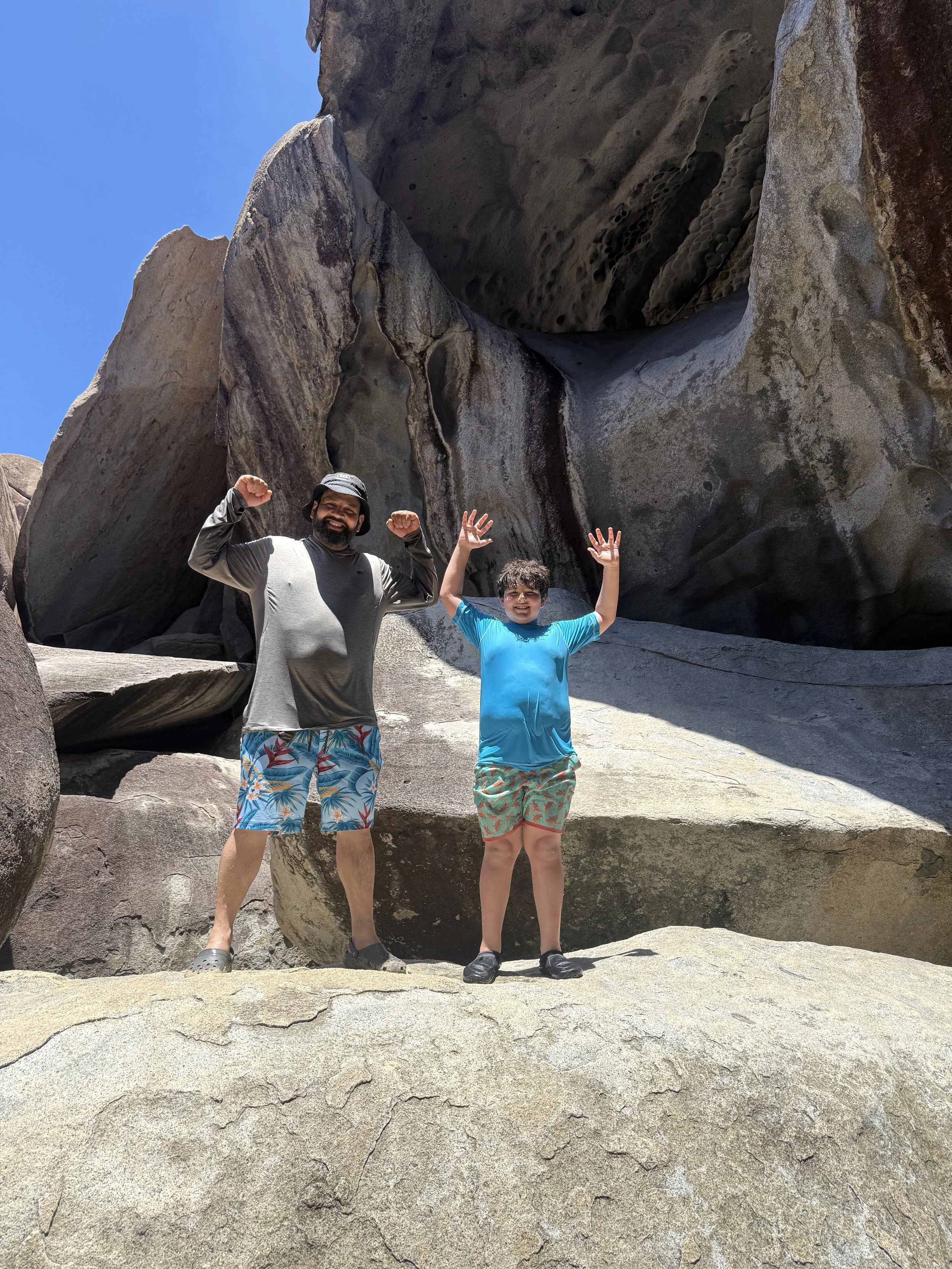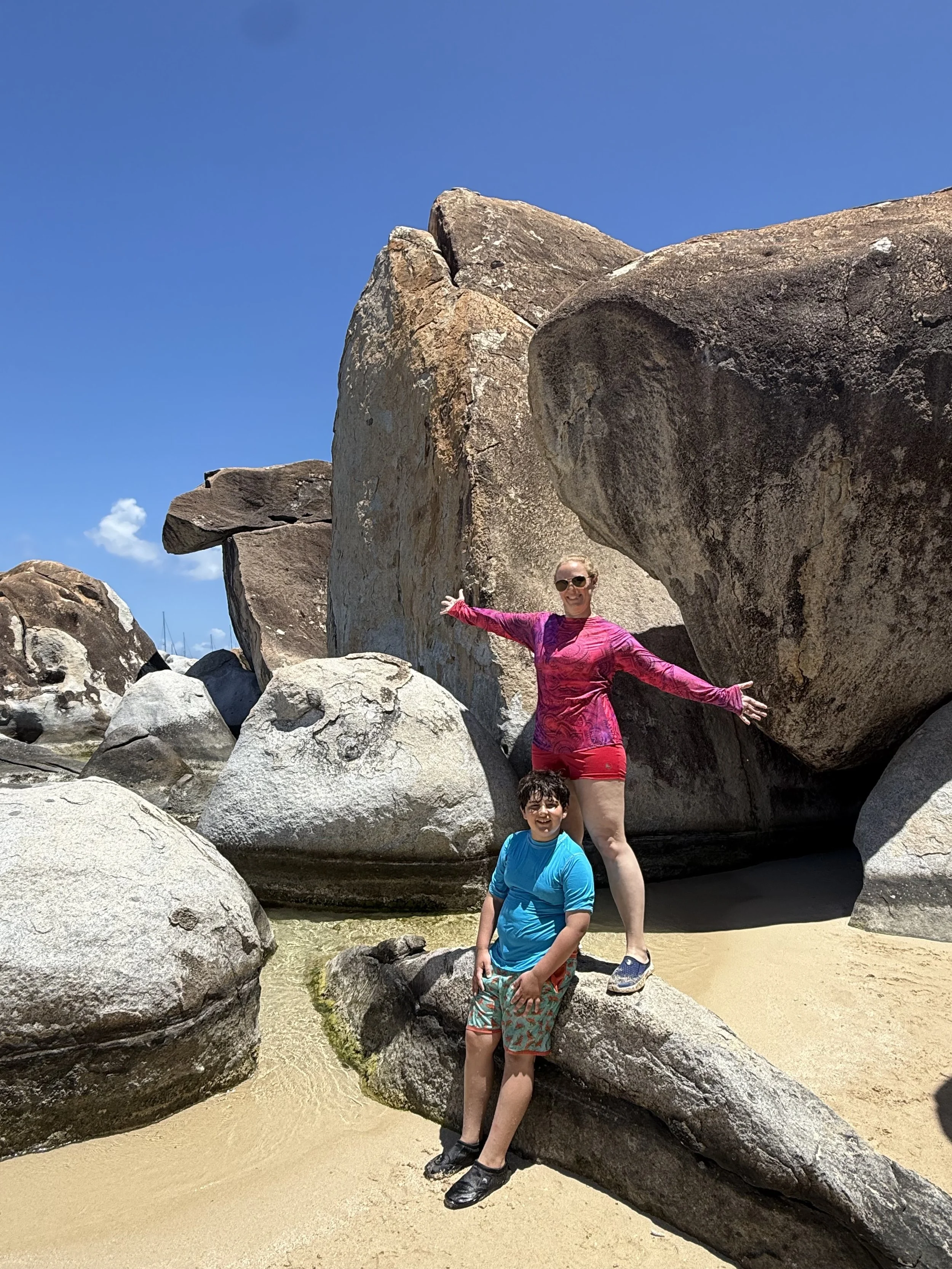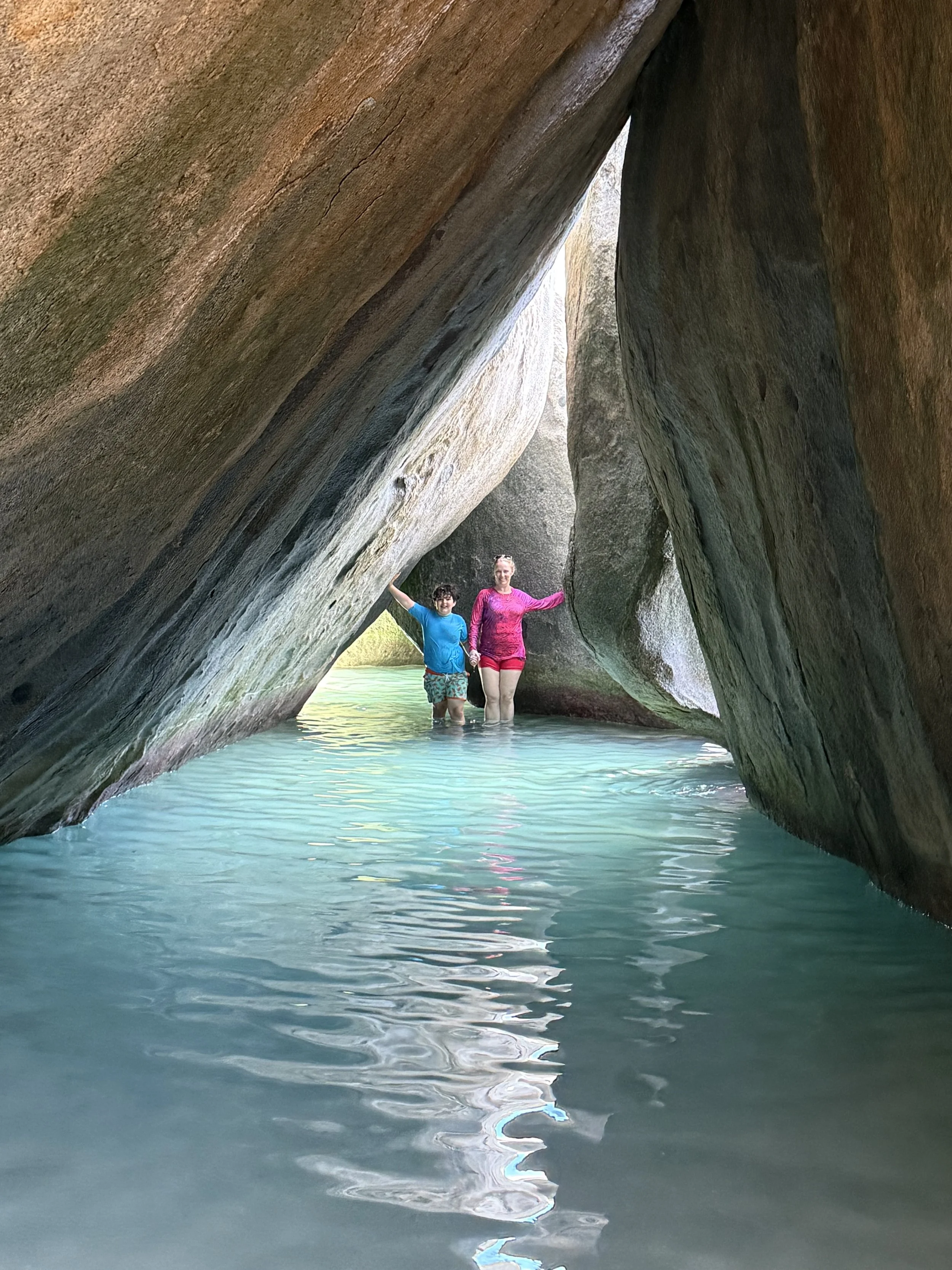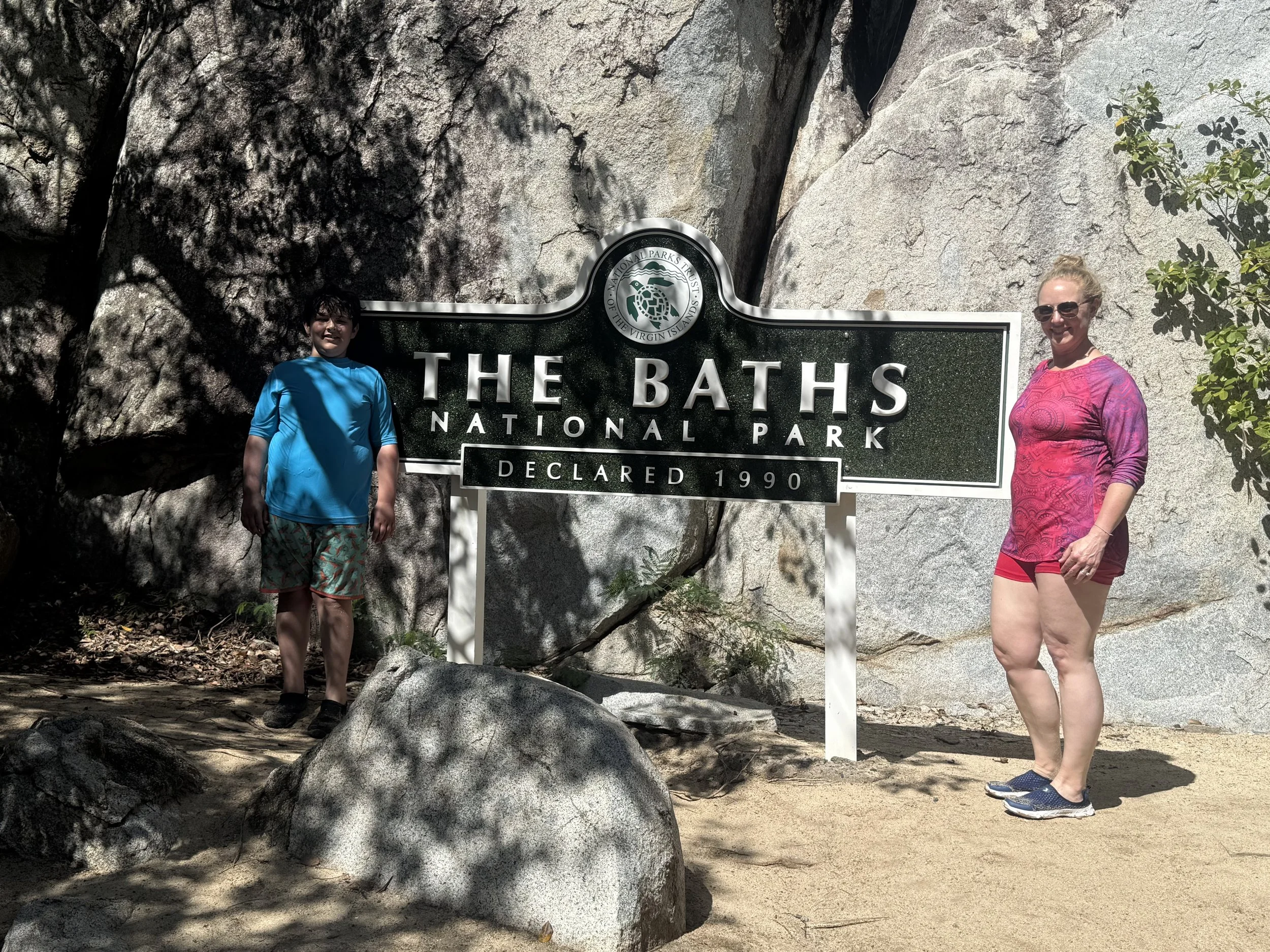 There is a Baths trail that goes through several caves. There are ladders and rope railings to help with the access. It is quite a challenging terrain. The cost is $3 for adults and $2 for children. Since everyone has to swim to shore not everyone has cash to pay the entry fee. Several people had to go back to their boat to get cash. The beach bar and restaurant are also cash only. The last time we were at the Baths in 1996 we landed the dingy on the beach and toured the caves for free. We were also I. The BVI in 1978. We returned to Chicago after the cruise and were welcomed by a massive blizzard. I remember climbing over a huge snow bank at the end of our driveway. Priscilla and I were still wearing shorts and Topsiders. That was almost 50 years ago. Yikes!