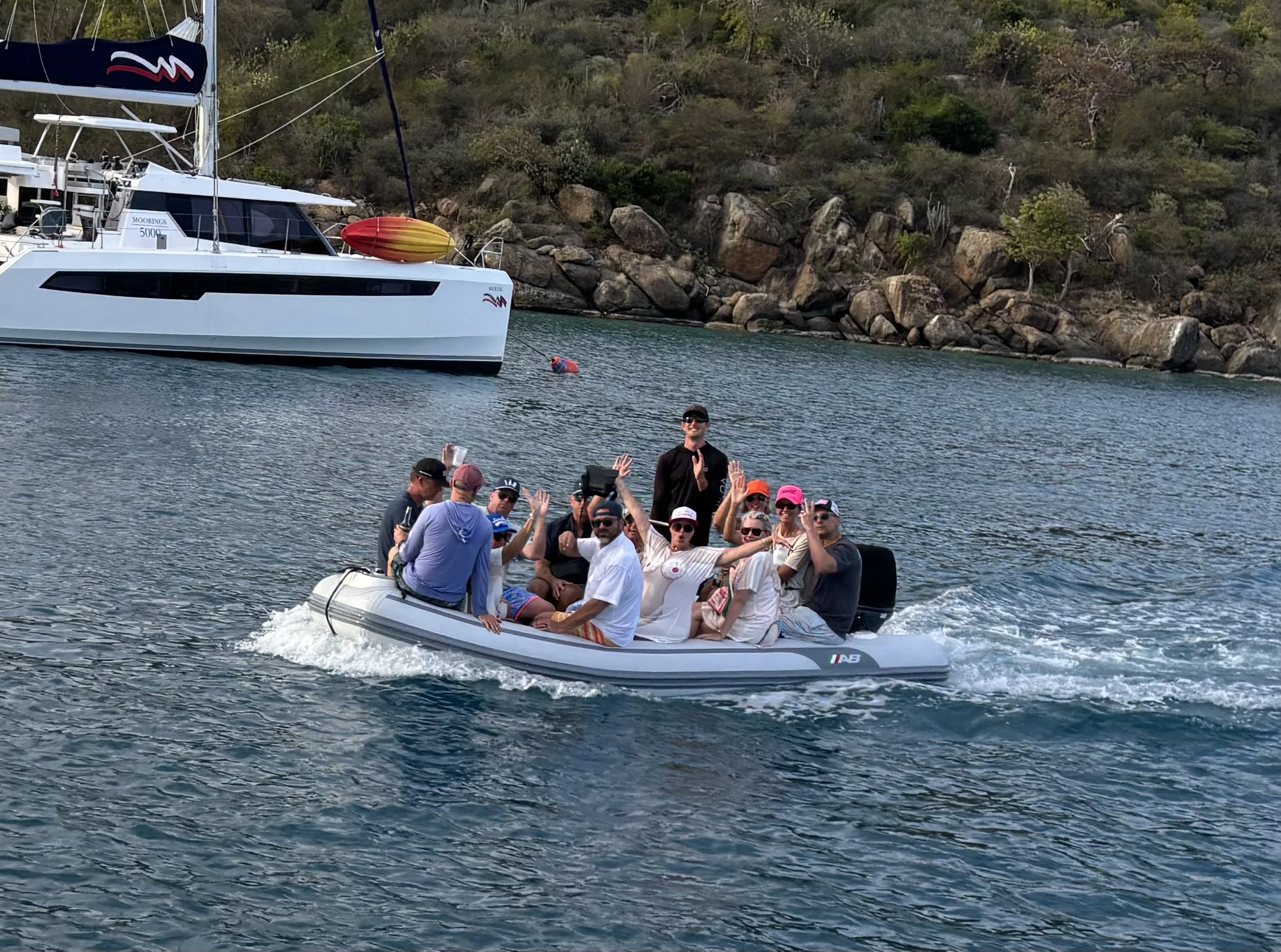Our boat neighbors passed by with 13 people in their dingy. Yes 13.