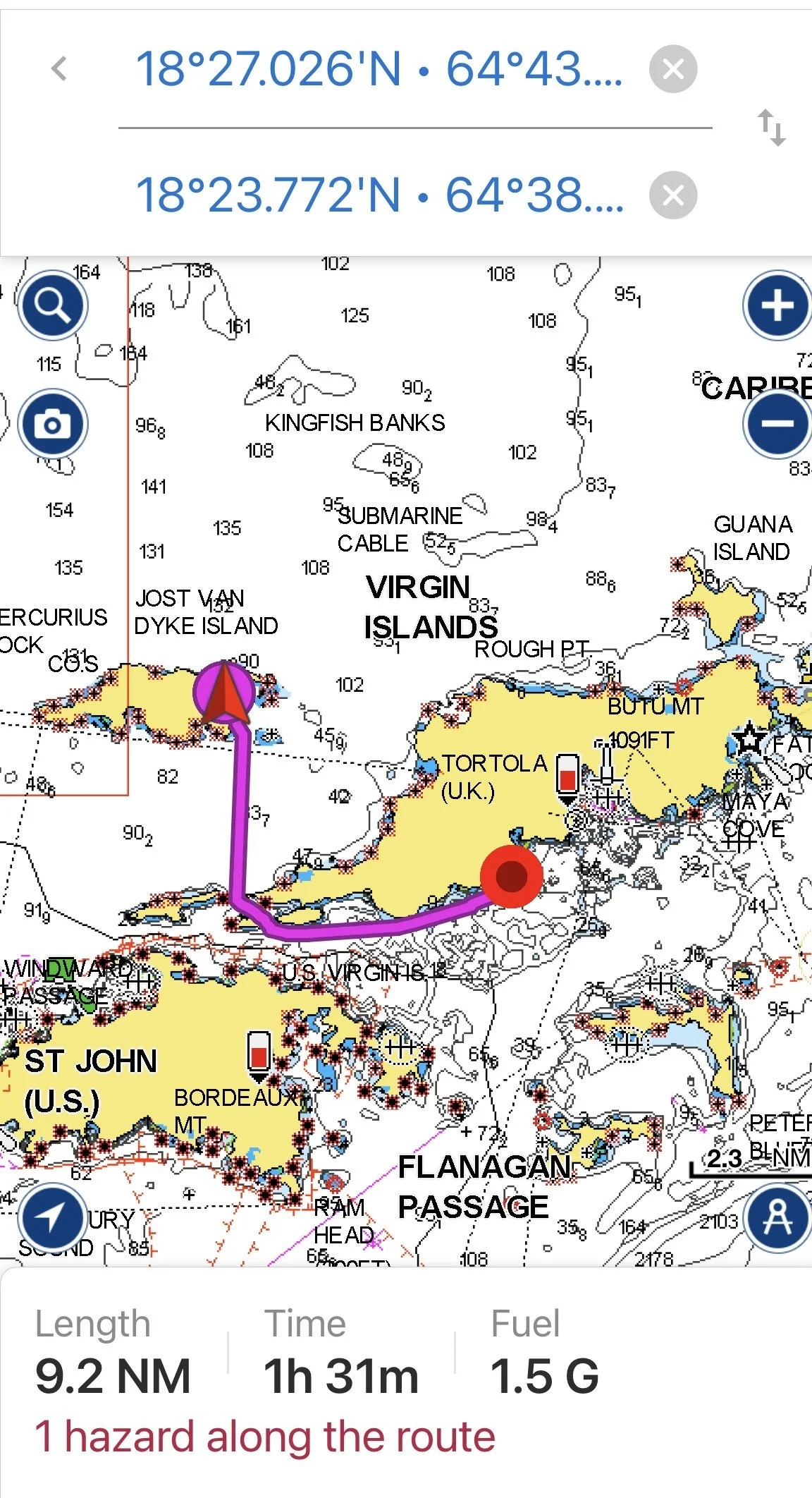 This was not our actual course because we sailed around for several hours and then then headed to Nanny Cay.