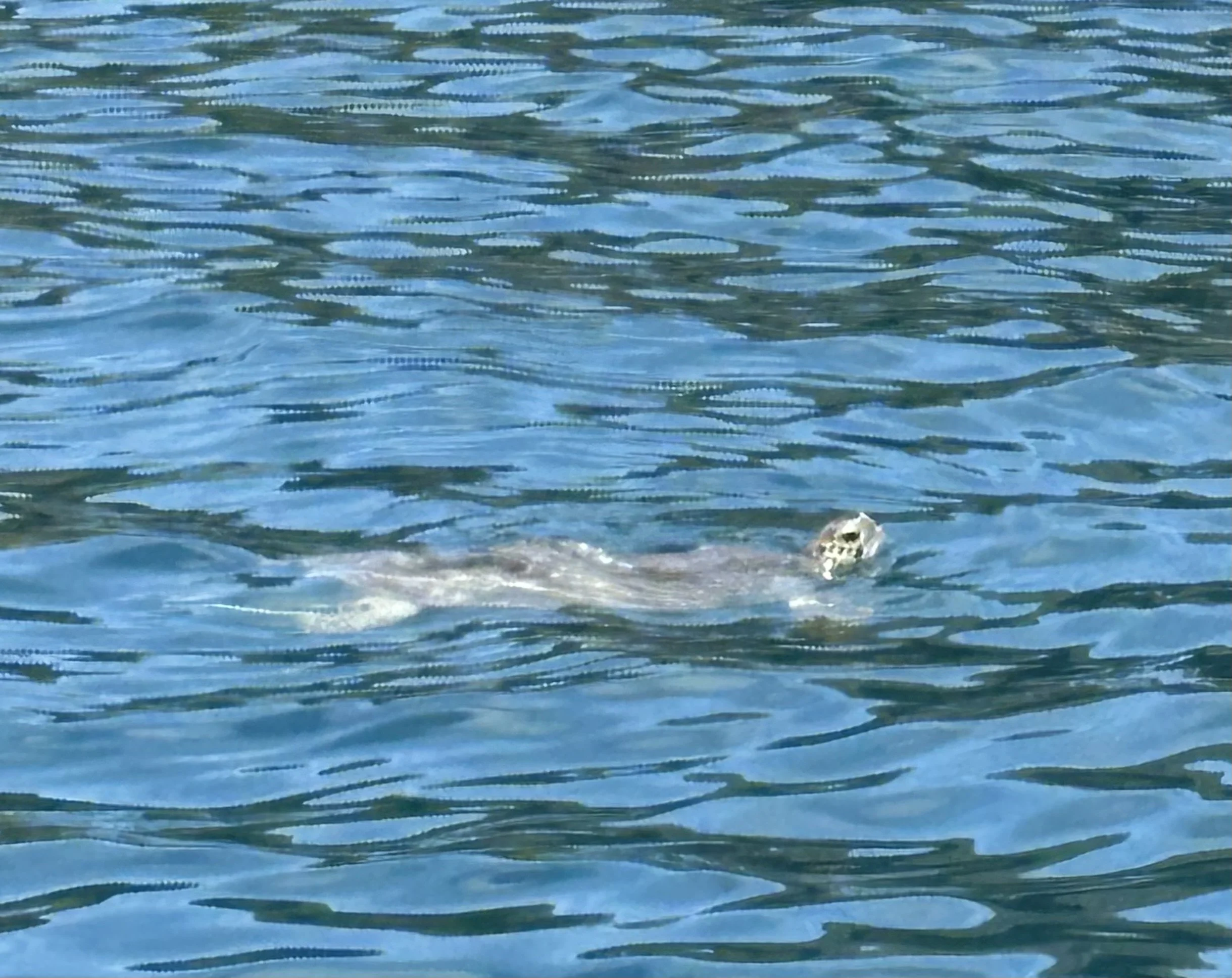 We had a visitor join us for coffee. This sea turtle was hanging around our boat all morning.