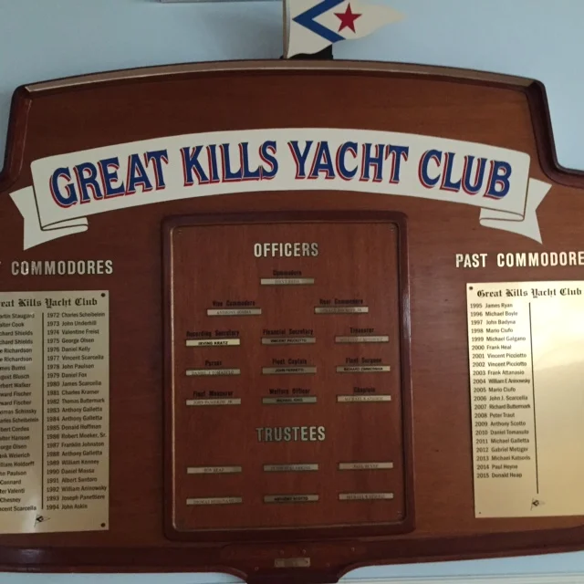 Miles cruised 0, fuel purchased $18 for the dingy, slip fee $100, daily high temperature 80°F. Many of the boats at the Great Kills Yacht Club (GKYC) on Staten Island, NY were demolished by hurricane Sandy. Every boat on a mooring, every boat on the docks and every boat on the hard was damaged or destroyed. This sailboat was owned by a Canadian transient. The bow was broken off. He just flew home to Toronto and abandoned the boat. A reminder of what was. There are six Loopers at GKYC. The yacht club members are very welcoming. We went to the YC bar and everyone was happy to see us. The beers are $2.00 - $2.75 and the mixed drinks are $3.00. The GLYC has an amazing business model. They have 150 paid members at $400 per year and 25 legacy members (free after 25 years of paid membership) and 300 members on the waiting list. They could have many more than 300 on the waiting list but that would be too much paper work. When the YC flag is at half mast the potential members do not ask who passed away, they ask did the deceased have a boat slip? The cost for a 40' slip at the YC is $750 per year. At the marina next door the cost for a 40' slip is $7,000 per year. The top 30 potential members are allowed access to the GKYC bar until they become full members.We were visited on Changing Latitudes by my cousin Scott and his fiancé Selena from Perkasie, PA. This is a very auspicious day for them. Today is Scott's first day of retirement from Nationwide Insurance after 32 years and they announced that they have set their wedding date for November 26. I am honored to advise that Captain Father John aka Captain Grandfather John has been selected as the wedding officiant. Scott and Selena will spend the night onboard CL and tomorrow we will cruise up the Hudson River to the Statue of Liberty.We went for a dingy ride and picked up a plastic bag on our prop. First time that happened.Great Kills Harbor is not the most hygienic.