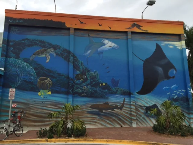 Miles cruised 47, fuel purchased 238 gallons, fuel cost $508, this was our first fuel purchase in seven weeks, daily high temperature 82*fWe are on the road again. After 47 days in Key West, Changing Latitudes is on the move.On Saturday night at TrawlerFest, pizza was the feast on the upper deck of Star Fisher. The amazing view at sunset on the ICW and conversations with new friends prevented us from wandering off to a local restaurant. Simple pleasures.Priscilla and John picked up an Avis rental car on Sunday morning in West Palm Beach to drive back to Key West. Kirstyn was kind enough to drop us off at Avis on her way home to Ft Meyers. It was supposedly a five hour drive but it ended up being much longer due to the Seafood and Stone Crab Festival in Key Largo. The traffic was backed up on Route 1 for miles and miles. Eventually we arrived in Islamorada and had lunch at a seaside restaurant called Island Grill. They had nice seating right on the waters edge.We were lucky to get through Key Largo when we did because at 2:30 pm a car pulled out in front of two people on a Harley and the cyclists has to airlifted to the hospital. That completely shut down traffic for hours.On our last night in Key West, Priscilla and I had a farewell happy hour cocktail at the Conch Republic. After 47 days it was sad to say good by to Key West Harbor - until next time. We had dinner at Pepe's and then headed back to Changing Latitudes to drop off our luggage. Then I returned the rental car to the Key West Airport and took a taxi back to the boat.Dale and Andy were docktailing with John and Jan from Mitzvah. John and Jan have been living on their boat on the hard in a boatyard while the bottom was being repaired. They had been experiencing a lot of leaking in their bilge. It turns out the boat a 1981 Marine Trader was built in two sections and joined together in the middle. Their boat was splitting in half. Other boats of that design had split in half and sunk. They were very lucky. John the owner says that Marine Trafer is the Chevrolet of trawlers.We had a relatively flat 47 mile cruise north from Stock Island to Marathon. We went under the Seven Mile Bridge from the Atlantic to the Gulf side on the Moser Channel. Then we took the ICW for five miles to the Marathon Yacht Club. George and Pat Hospodar were able to get us in. It was a tight fit getting CL with her 14.6' beam into a 15' wide slip but Dale lined her up and drove her right in.We have an unobstructed view of the gulfThe Marathon Yacht Club has a very nice heated pool. We have found a new home for two days.Bonus photo - Wyland mural on the wall at the Wharf Brewery in Key WestCarl (Chef) Wooden - quote of the day."I felt once more how simple and frugal a thing is happiness: a glass of wine, a roast chestnut, a wretched little brazier, the sound of the sea. Nothing else."Nikos Kazantzakis, Zorba the GreekNikos Kazantzakis - 18 February 1883 – 26 October 1957) was a Greek writer, celebrated for his novels which include Zorba the Greek (published 1946 as Life and Times of Alexis Zorbas), Christ Recrucified (1948), Captain Michalis (1950, translated 'Freedom or Death), and The Last Temptation of Christ (1955). He also wrote plays, travel books, memoirs and philosophical essays such as The Saviors of God: Spiritual Exercises.
