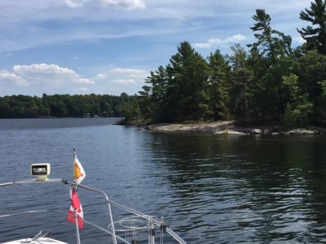 Miles cruised 13, locks transited 1, lift 6', fuel purchased $0, slip fee $62, daily high temperature 88°fMonday started with a nice walk along the Lakefield waterway. At 10:00 am Melanie Allen picked us up and took us to Paris Marine to buy our fuel filters for the dingy engine. We then went to the Canadian Canoe Museum in Peterborough. The Canoe Museum traces the history of canoes and kayaks from the early days of the Indians, Inuits and voyageurs through the current day with fiberglass, aluminum and Kevlar. They have over 3,000 canoes and kayaks in storage in addition to all the canoes and kayaks on display.Melanie took us to lunch at the Lakefield Country Club where we met her husband John as he finished his round of golf. We then visited their home on Clear Lake that has a dock and a tennis court.On Monday evening we were joined by long time boaters Robert and Donna Lockhart. They own a classic 1974 Egg Harbor 33 called Summer Quarters. They have owned Summer Quarters for 25 years. Robert and Donna have been cruising the Trent and Georgian Bay for 40 years. They gave us insightful suggestions on ports and anchorages for our remaining time in Canada.On Tuesday John Allen picked me up at 8:30 am and we went to his home to get his boat. He wanted to show me a wonderful anchorage where we could have lunch and swim. It turns out the anchorage he took me too is only 1/2 mile from the McCraken's Marina where we will spend the night. John has a 20' inboard bow rider. At 45 mph it did not take us long to cross Clear Lake and Stony Lake to get to the anchorage.The old swimming hole. The scenery on Stony Lake looks just like the North Channel of Lake Huron with rose granite islands and pine trees.We cast off at 11:00 am and transited one lock at 6'. Total travel was 13 miles. We anchored in 17' of water, had lunch and went swimming all afternoon. After swimming, we cruised 1/2 mile to McKraken's Marina. They have a bakery that makes the best blueberry scones ever. And did I mention the banana bread?Dale installed the new filters in the dingy so off we went for a test ride. It ran great for five minutes then stalled out as before. Priscilla suggested pumping the fuel ball. That worked and we where able to motor back to CL. So now we have clean fuel filters and the same problem. The remaining suspects are a clogged air vent or a bad fuel pump. We shall see.The 12 year old Racor fuel filter.Well it turns out there was a third possibility. As I was unsuccessfully searching for the fuel vent I traced the fuel line and noticed that the fuel line had worked itself between the inflatable tube and the rigid bottom. With the hot weather, the tube expanded and pinched the fuel line. I pulled the fuel line out and straightened it and now the dingy motor runs like a champ.There is a lovely church on Stony Lake that was built on a rock. It is only accessible by boat. This is the church where John and Melanie Allen's daughter was married last year.Bonus photoOn Wednesday we will cruise 13 miles and transit 3 locks to Buckhorn Lake Marina. We are slowly making progress towards Orillia.Carl (Chef) Wooden - quote of the day."If your ship doesn’t come in, swim out and meet it."- Jonathan WintersJonathan Harshman Winters III (November 11, 1925 – April 11, 2013) was an American comedian, actor, author, and artist. Beginning in 1960, Winters recorded many classic comedy albums for the Verve Records label. He also had records released every decade for over 50 years, receiving 11 nominations for Grammy Award for Best Comedy Album during his career and winning a Grammy Award for Best Album for Children for his contribution to an adaptation of The Little Prince in 1975 and the Grammy Award for Best Spoken Comedy Album for Crank(y) Calls in 1996.