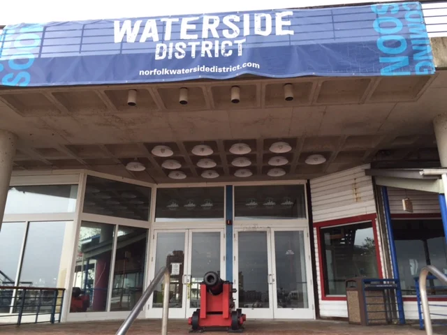 It is curious that at the entrance to the Waterside welcome center is not a welcome mat but a cannon. How welcoming is a cannon pointed at you?