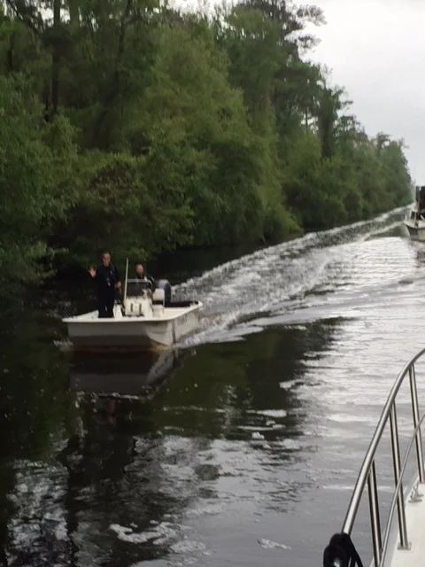 Hello to the nice policemen. The no wake rule does not apply to them.