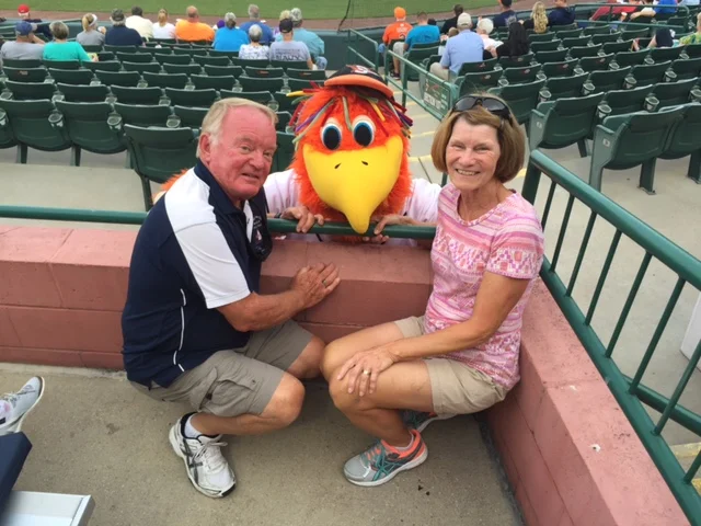On Monday night Andy and Dale went to a minor league baseball game and had their picture taken with Sherman the mascot at Purdue stadium, from Purdue Chicken fame, in Salisbury, MD. They watched the DELMARVA (Deleware-Maryland-Virginia) Shorebirds defeat the Annapolis Intimidators 3 to 1. It was $2 admission, hot dog and soft drink night. They went as guests of their new friends at the St. Luke’s United Methodist Church in St Michaels, MD.