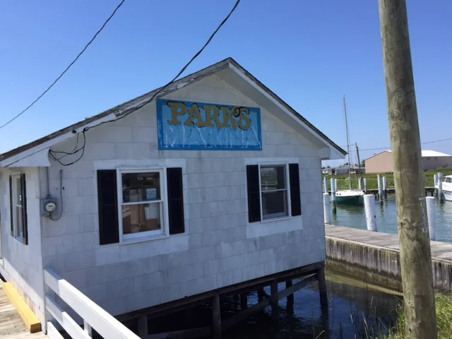 At about 9:45 am we cast off for our first stop of the day, Tangiers Island, which is a 20 mile cruise from Onancock. We tried calling Parks Marina to get dockage for a few hours. After several attempts and no response we tied up to Parks Marina’s face dock. Mr. Parks was working on the engine in his boat and did not see us arrive. He charged us $5.00 for a tie-up fee. Parks Marina is where Artie from Leap of Faith had to be air lifted to the hospital. The 85 year old Mr. Parks remembered the incident quite clearly and was happy to hear that Artie had recovered.