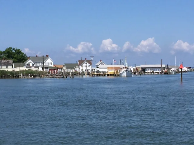 The view entering the harbor at Tangiers Island.