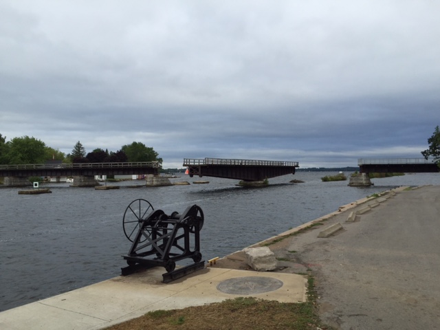 The Kirkfield lock is a hydraulic lift lock similar to one the we transited in Peterborough. However, the Kirkfield lock is not enclosed so there is a greater sense of being suspended in air. We are at the highest point on the Trent Waterway. When we enter the upper pan on Monday we will be lowered down 49′. The remaining 9 locks on the Waterway will continue to lower us down to the level of the Great Lakes. The other change is the color designation of the channel markers. From now on the red markers will be on the left. I flipped the tongue depressor on our dashboard to indicate the correct colors.