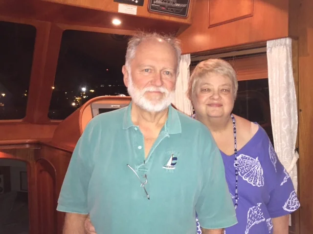 We (Weber Yachts) hosted another very successful sundowner party with two very motivated boat buying couples. We will not deny them the yacht of their dreams. Chris Weber also invited his friends Roy and Stefanie Hodges to join us. Until very recently, Roy was the captain on a 170 Feadship mega yacht and Stefanie was the pursuer and food service manager. You can buy a 1997 Feadship for $30 million. Roy has a home in Eluethra in the Bahamas and gave me lots of navigation and anchorage tips.