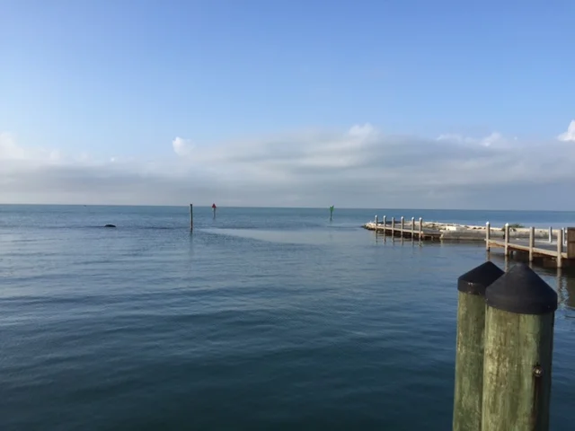 We had a relatively flat 47 mile cruise north from Stock Island to Marathon. We went under the Seven Mile Bridge from the Atlantic to the Gulf side on the Moser Channel. Then we took the ICW for five miles to the Marathon Yacht Club. George and Pat Hospodar were able to get us in. It was a tight fit getting CL with her 14.6′ beam into a 15′ wide slip but Dale lined her up and drove her right in.