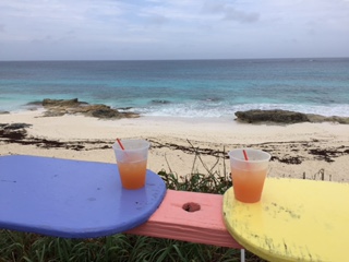 We picked up a mooring ball and went ashore at Great Guana Cay. Nipper’s has a golf cart shuttle so we took that up the hill. Nipper’s is on the bluff overlooking the Atlantic Ocean. A stunning view. After walking the beach we had an obligatory rum punch and walked back to town. We checked out a local beach restaurant in the harbor called Grabbers.