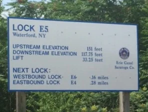 Each lock provides the details on the distance to next lock and height above sea level. Photo by Priscilla.