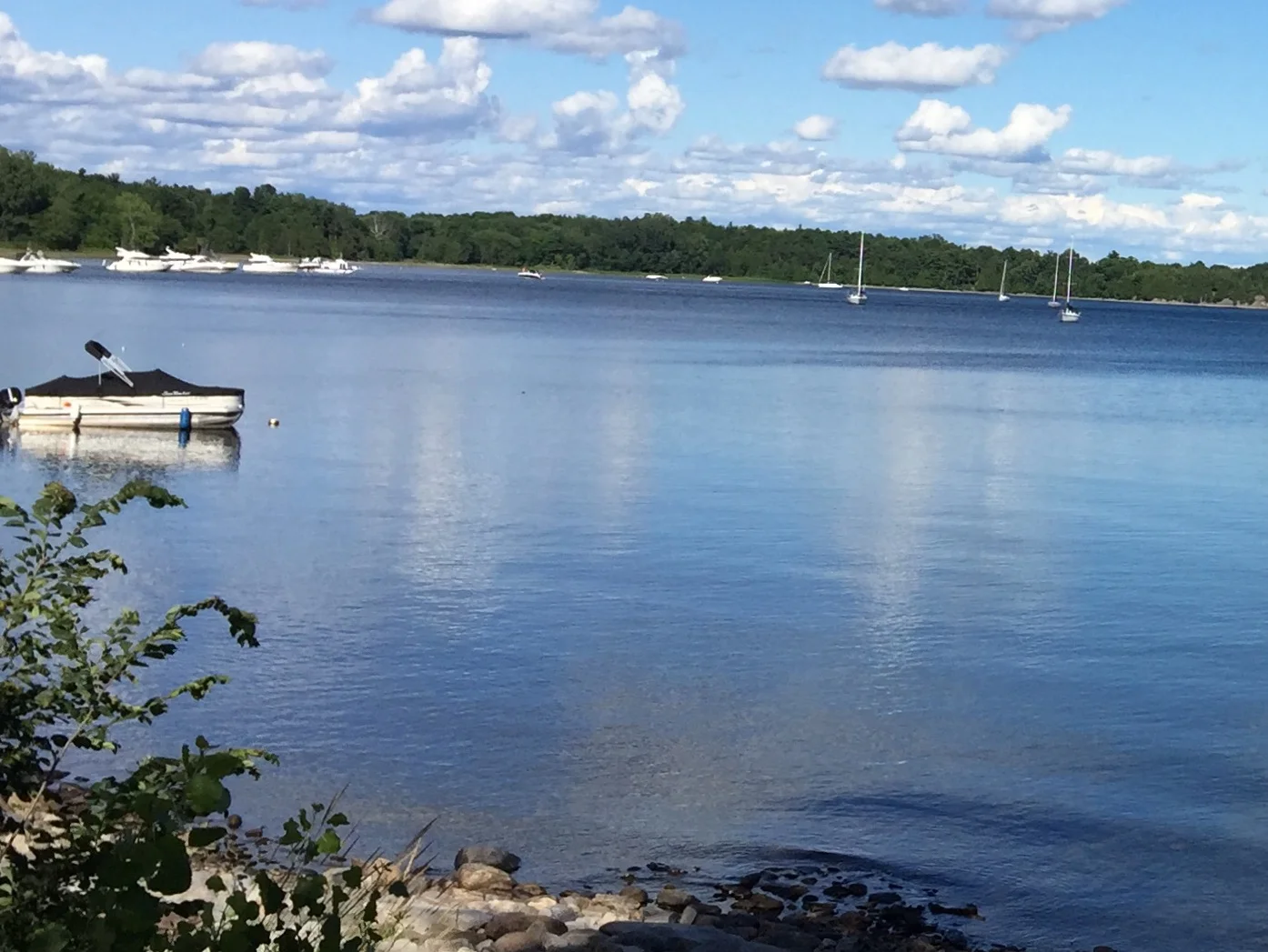 On Monday the Enterprise rep arrived early and we started our 4.5 hour drive from Syracuse to Plattsburgh. We took the scenic route through the Adirondack Mountains. We had a few rain showers along the way and arrived in Plattsburgh at 5:00 pm. Dick and Candy Smith have a lovely cottage overlooking Treadwell Bay on Lake Champlain. The cottage has been in the Smith family for 60 years.