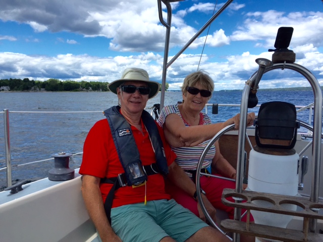 John and Priscilla enjoying a day of sailing onboard Odyssey on Lake Champlain.