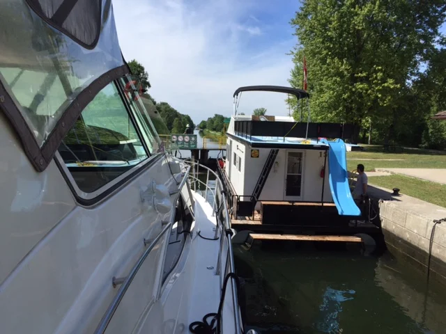 Our evening on the Kirkfield lock was lovely. We had the company of two other boats, a sailboat heading south and a black rental houseboat heading north with us. While security is not a big concern in Canada, it is always nice to have at least one other boat nearby just in case. Dale and Andy had dinner at the local restaurant across from the lock masters office called Flo’s Lock Ness restaurant. John and Priscilla had dinner on CL. The yellow tail snapper we caught in Key West was still excellent.