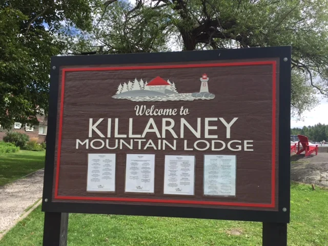 Sunday morning was overcast and cool. We boiled water on our grill for tea and coffee and had cereal for breakfast. We hauled anchor at 9:30 am and were tied up and plugged in at the Killarney Mountain Lodge Marina by 10:30 am. We last stayed here in 2014. The lodge is under new ownership and with many improvements and updates. The docks are all new and much longer and wider with 50 amp service.