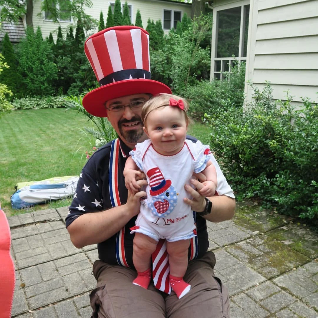 Bonus photo – granddaughter Eleanor enjoying July 4th in Lake Bluff, Illinois with my son JP.