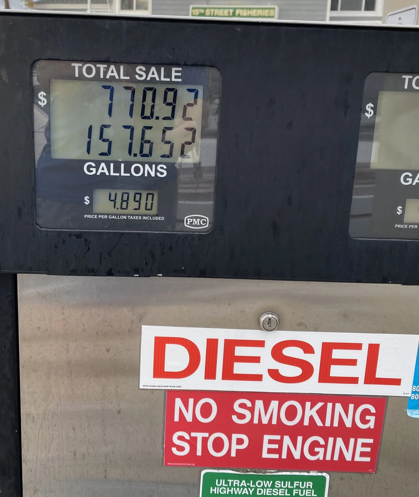 The wind is free but the diesel fuel is not. Yesterday Bistari took on $770 of diesel fuel.