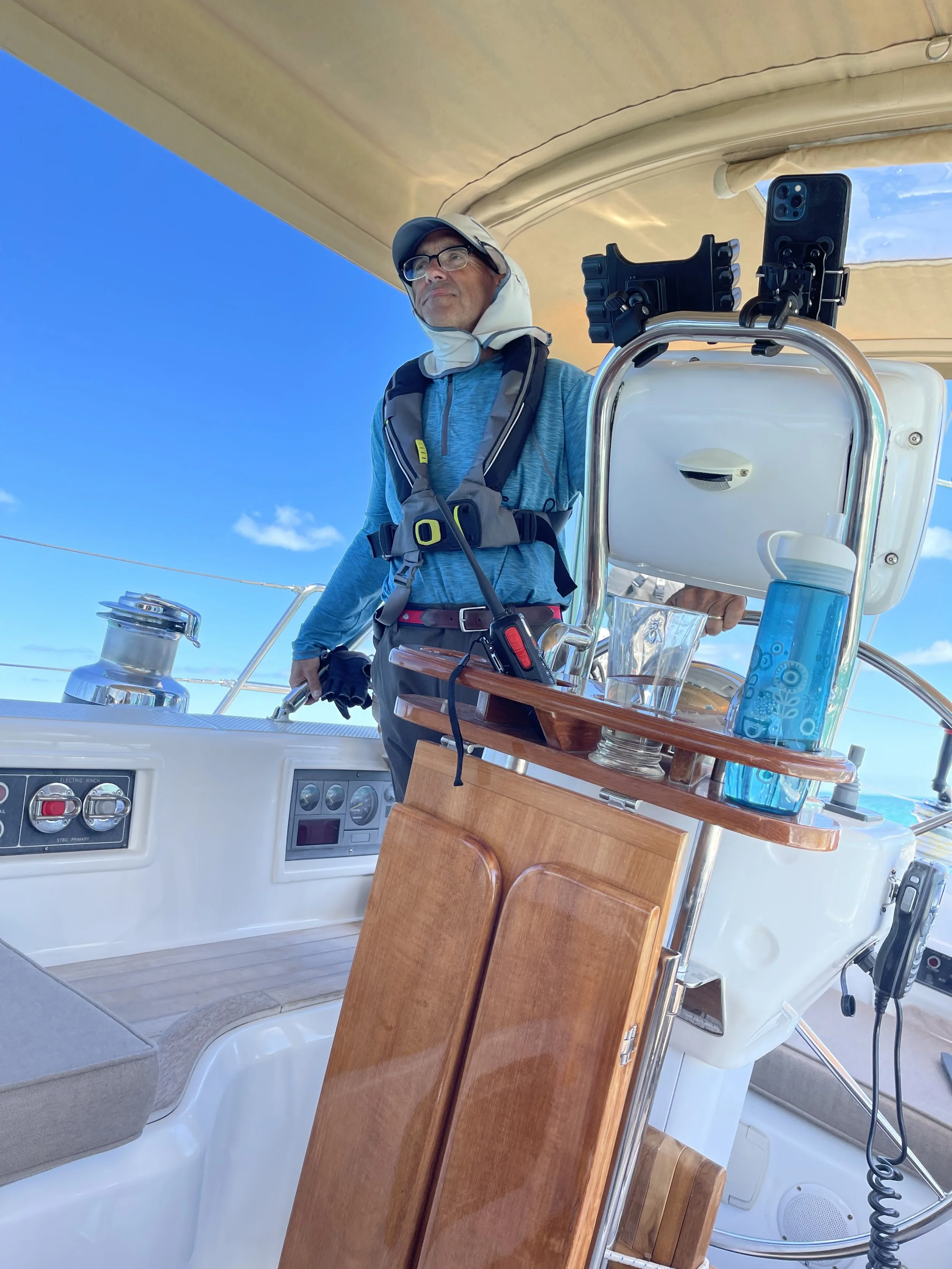 We are experiencing many “firsts” on Bistari. Yesterday was her first cruise to an overnight destination and her first night on anchor. All systems are working. We have a generator, solar panels and a water maker. We could live off the grid for a long time. Hoisting up the anchor went well. She has a salt water wash down hose. As the anchor chain is raised on the windless the mud and sand can be washed off before the chain goes back into the chain locker.