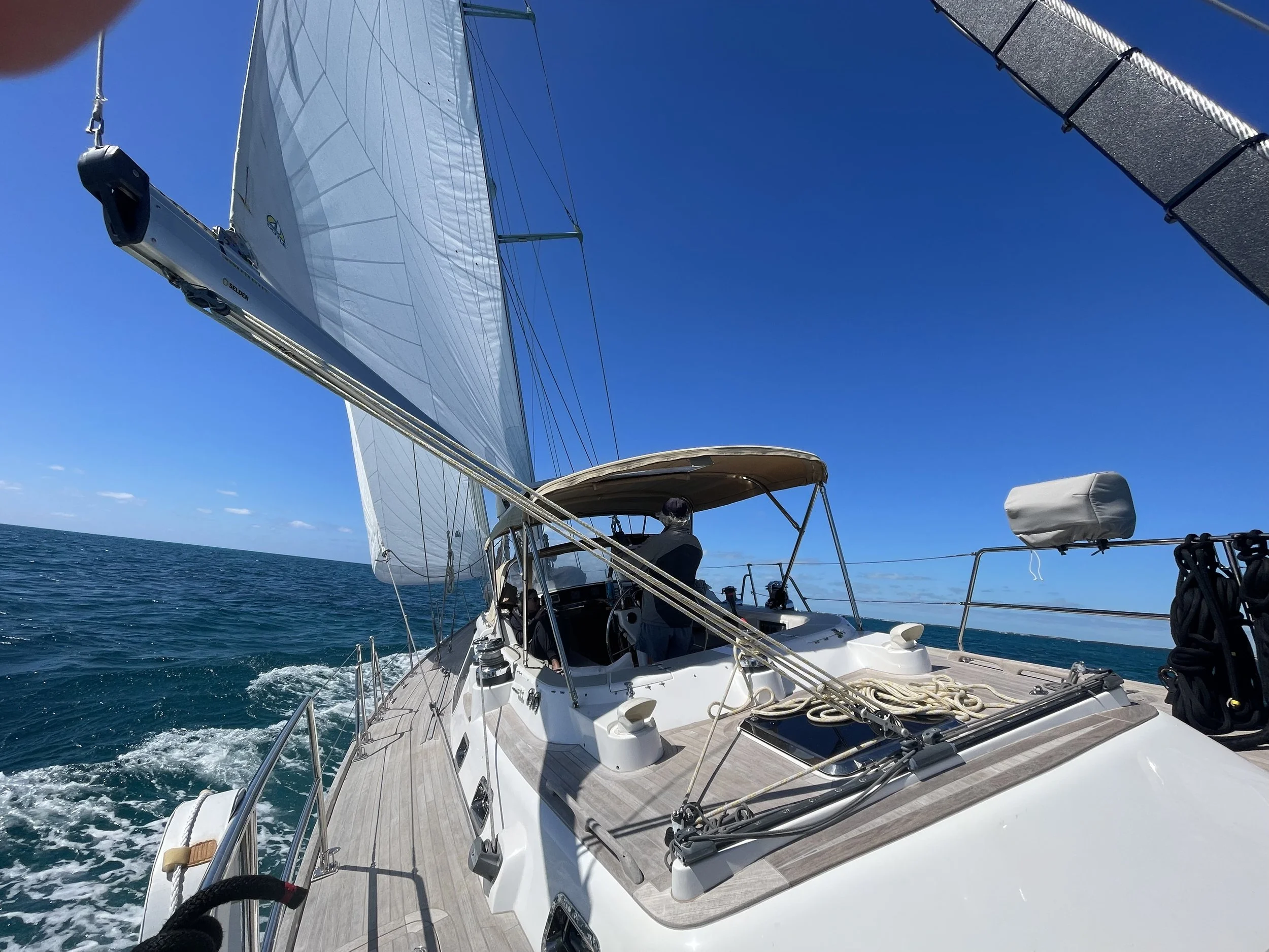 The good news is the winds are continuing to blow 15 - 20 mph from the NW. The sails are up and we are nicely making way over crystal clear blue water to Boot Key on Marathon Key which is our next port of call. Todays cruise is only 50 miles. A much more reasonable distance for a day sail compared to 80 miles yesterday.