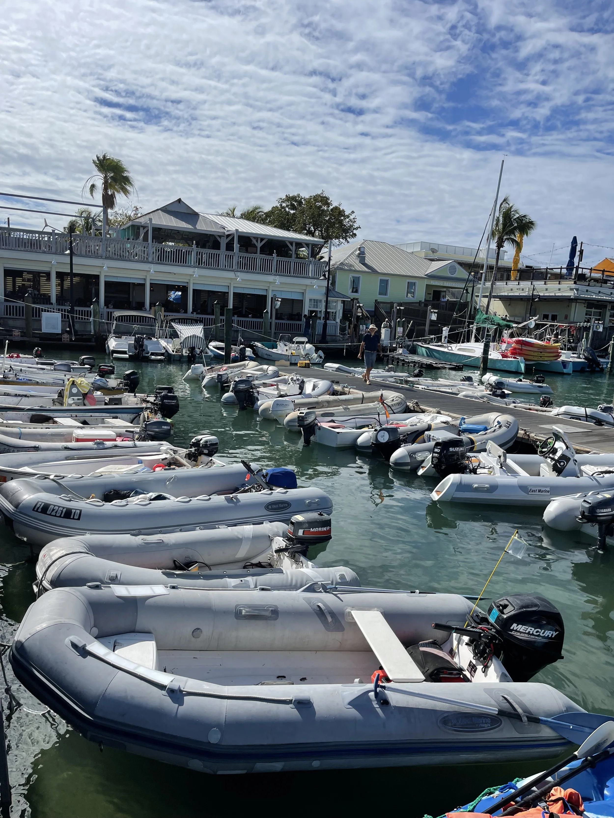 Going ashore in Key West is always an adventure unto itself. There is only one transient dinghy dock which is always full to overflowing. You must purchase a dinghy day pass at the Key West Bight Municipal Marina gas dock for $8. We arrived late afternoon so there was a dinghy departing. The dinghy’s are packed so tight that you have to force the dinghys next to you apart so you can force your way into the overcrowded dock. The space they had occupied instantly disappears as the other dinghys expand from being crushed.