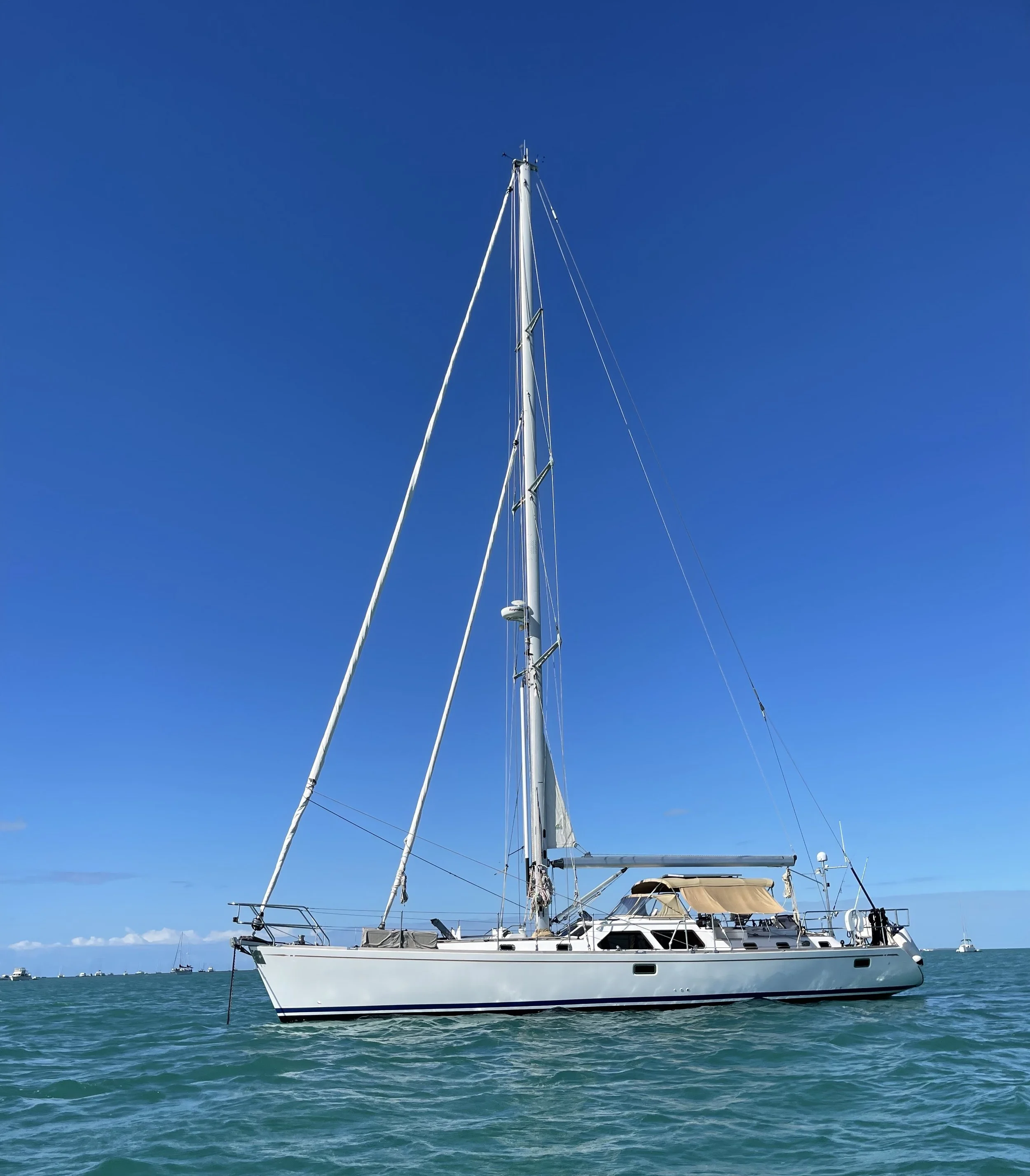Bistari at anchor off Fleming Key in Key West. She is a pretty boat.