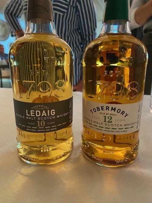 Back on the ship we had the owner of the Tobermory Distillery conduct a whisky tasting. She described the distilling process. Scottish law only allows three ingredients in the distillation of Scottish whisky. The ingredients are fresh spring water, yeast and malted barley. Her small distillery sells the vast majority of her production to Germany. Her greatest challenge has been the implementation of a 75% tax on whisky exports implemented after Brexit. Not very supportive of local industry.