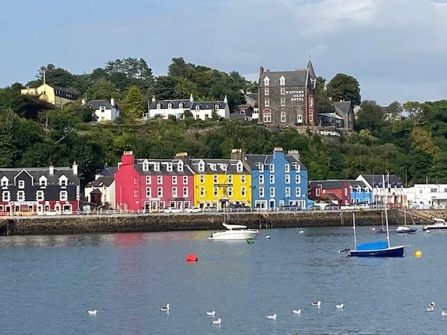The ship travels at night and we arrive at our next port of call at 7:30 am each day. We have room service breakfast and start our day. Today we are in Tobermory on the Isle of Mull. The island is 338 square miles and has a population of 2,900. At one time the population was around 12,000 but through a program of depopulation the farmers were displaced to make room to graze sheep. One program was to turn the farmers into fisherman. However the farmers didn’t have money to buy boats and fishing equipment. If they did catch fish there were no nearby markets to sell the fish. Other than that it was a perfect plan.