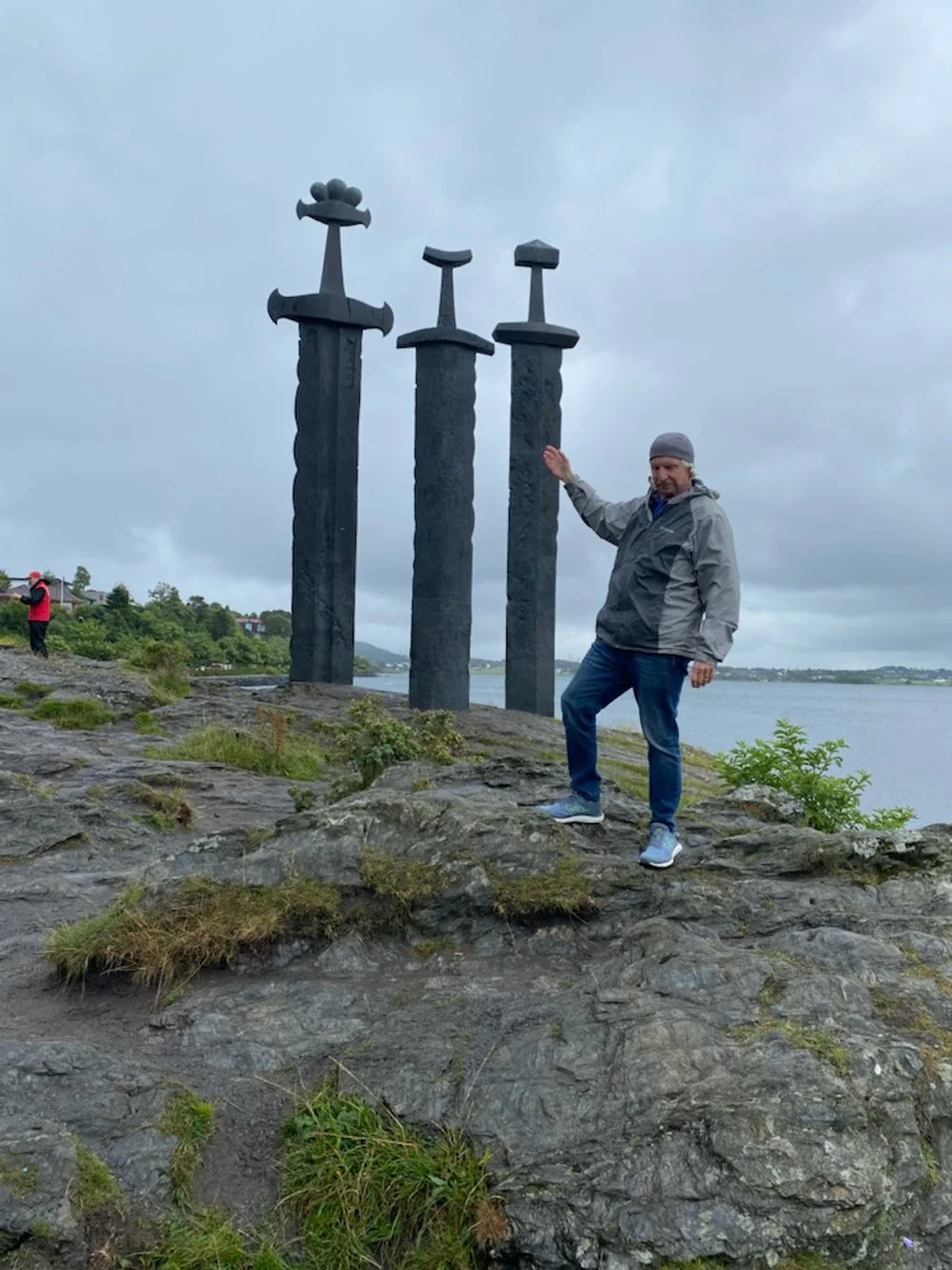 We docked in Sandnes which is a port just south of Stavanger. Our bus departed at 8:00 am to take us to our first stop at the Swords in Rock. This is a monument commemorating the Battle of Hafrsfjord in 872. King Harald was victorious and defeated the rival chieftains resulting in the unification of Norway for the first time. King Harald’s incentive to unite Norway was the result of being turned down by Gyda the daughter of Erik, king of Hordaland, the woman he wanted to marry. She told Harald she would only marry him if he could unite Norway. He took the challenge to heart. They did marry. He also refused to cut his hair until he united Norway. His name became Harald Fairhair..