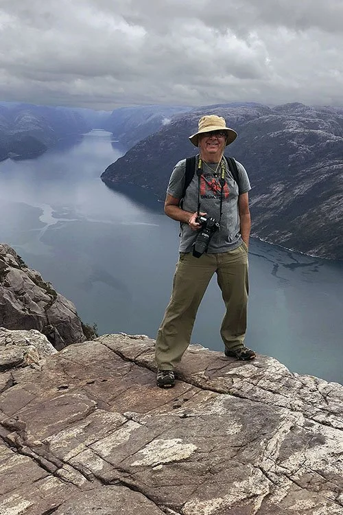 Peter Fisher is standing on Pulpit Rock 1,980 feet above the fjord. The movie Mission Impossible Fallout with Tom Cruise features a dramatic fight scene that takes place on Pulpit Rock.