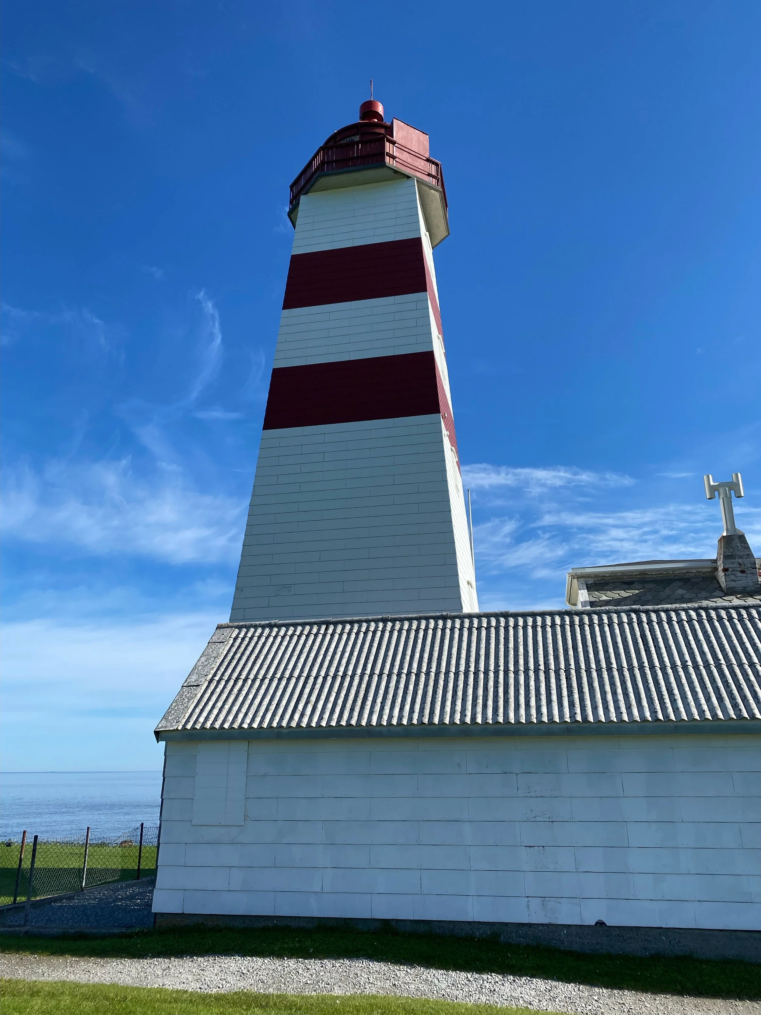 We drove out to the one of the farthest islands to visit Aines lighthouse at the end of the island of Godey. At one time the village was the most successful fishing village in Norway. We were treated to cake and coffee. We walked out to the lighthouse with the expectation to climb the lighthouse. It was locked. We took pictures of the lighthouse from every angle. We walked back to the bus and mentioned to the bus driver that the lighthouse was locked. He said the guide was supposed to get the key and unlock the lighthouse. The guide was sitting in the restaurant all by himself. I guess he was avoiding those annoying tourists. The next time we are in Godey we will be certain to get the guide to unlock the lighthouse.