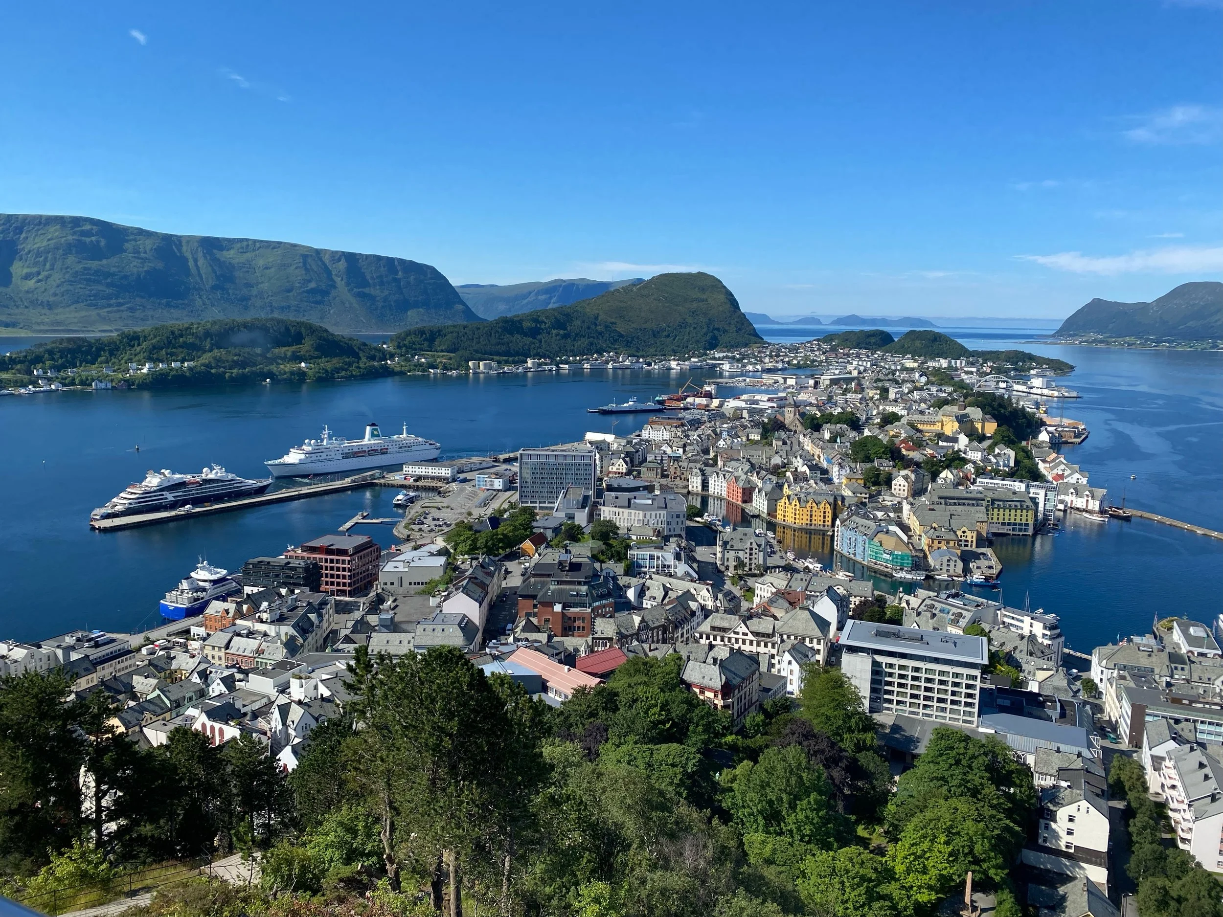 A view of Alesund and there she is our beautiful mega yacht on the left side.