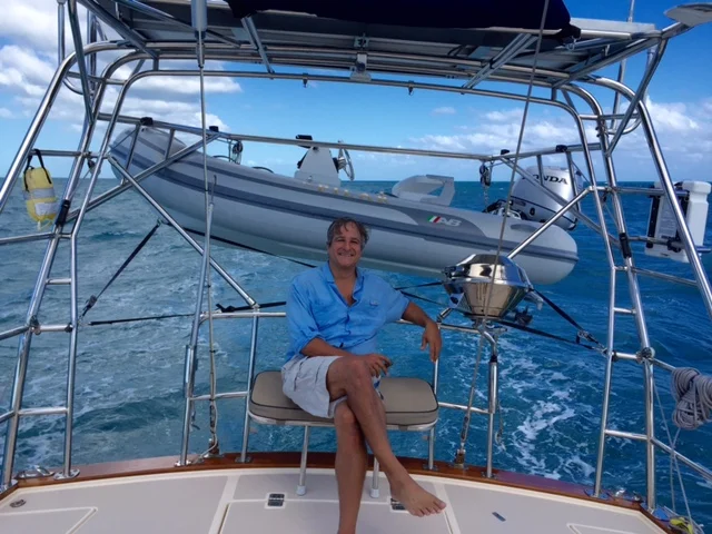 We are blasting down the Hawk’s Channel towards Key West at 7 kts with a stiff NE breeze and a following sea. It is warm, sunny and the waters are Caribbean blue. Life is good on Pilar.