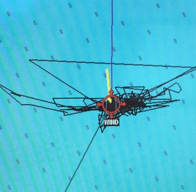Here is the track from the anchor alarm on the chart plotter. It looks like a spider web.